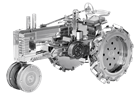 Is a simple open vehicle with two very large driving wheels on an axle below and slightly behind a single seat with the engine in front of the driver and two steerable wheels below the engine compartment. This basic design has remained unchanged for many years.