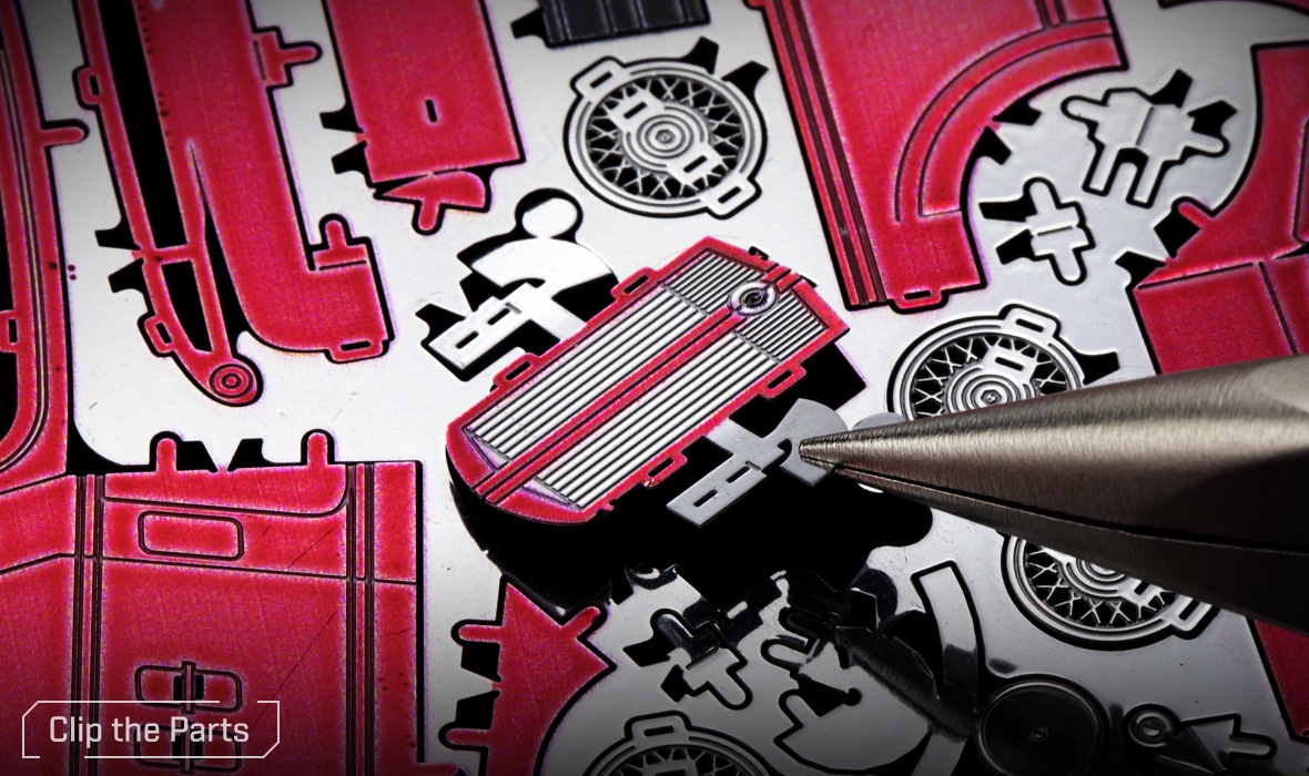 Parts can be more easily removed from the sheet using a pair of clippers. A pair of tweezers or needle nose pliers are highly recommended during assembly. Plan out and understand how the parts will come together.