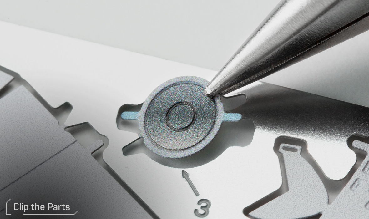 Parts can be more easily removed from the sheet using a pair of clippers. A pair of tweezers or needle nose pliers are highly recommended during assembly. Plan out and understand how the parts will come together.