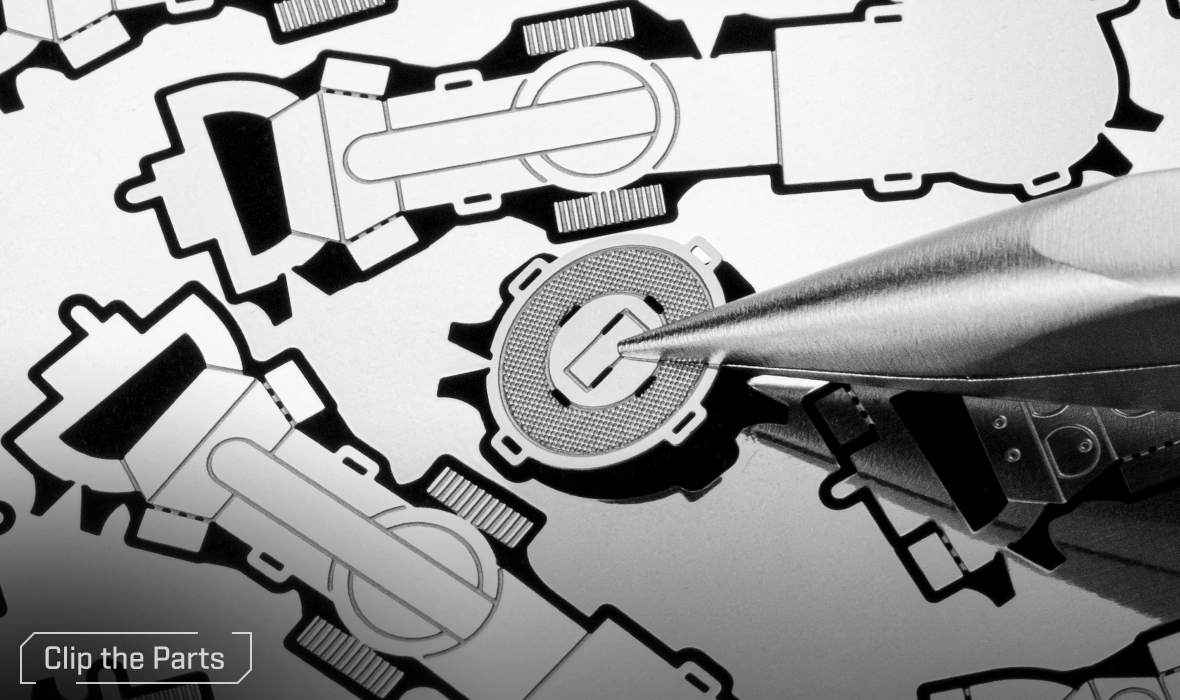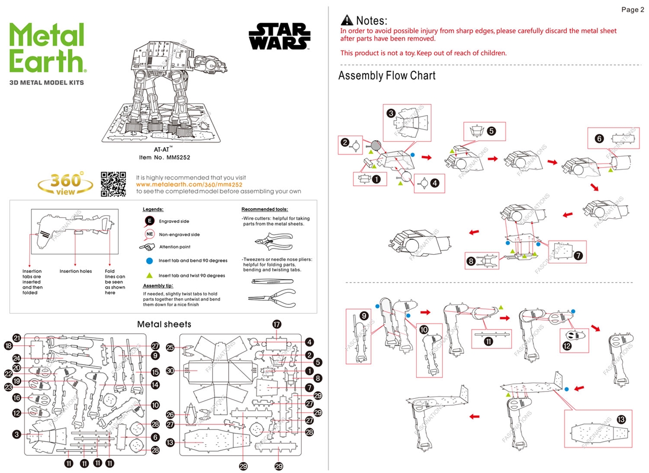 Parts can be more easily removed from the sheet using a pair of clippers. A pair of tweezers or needle nose pliers are highly recommended during assembly. Plan out and understand how the parts will come together.