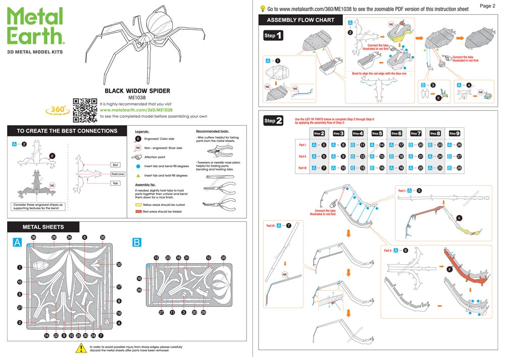 Parts can be more easily removed from the sheet using a pair of clippers. A pair of tweezers or needle nose pliers are highly recommended during assembly. Plan out and understand how the parts will come together.