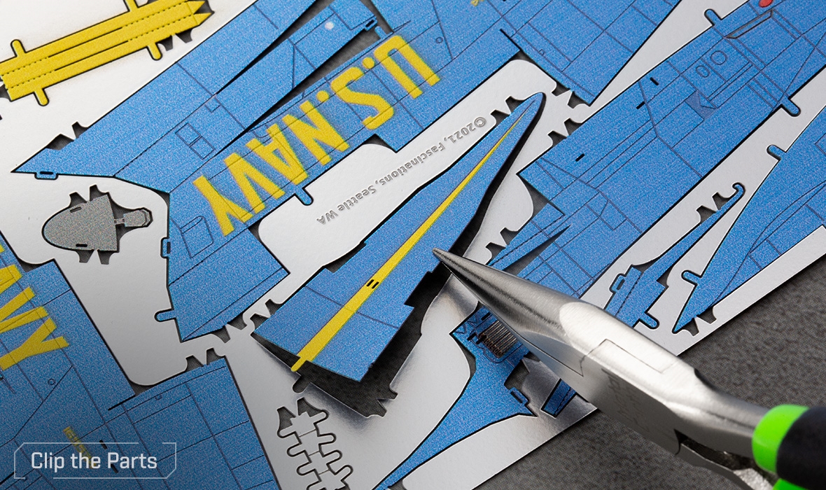 Parts can be more easily removed from the sheet using a pair of clippers. A pair of tweezers or needle nose pliers are highly recommended during assembly. Plan out and understand how the parts will come together.