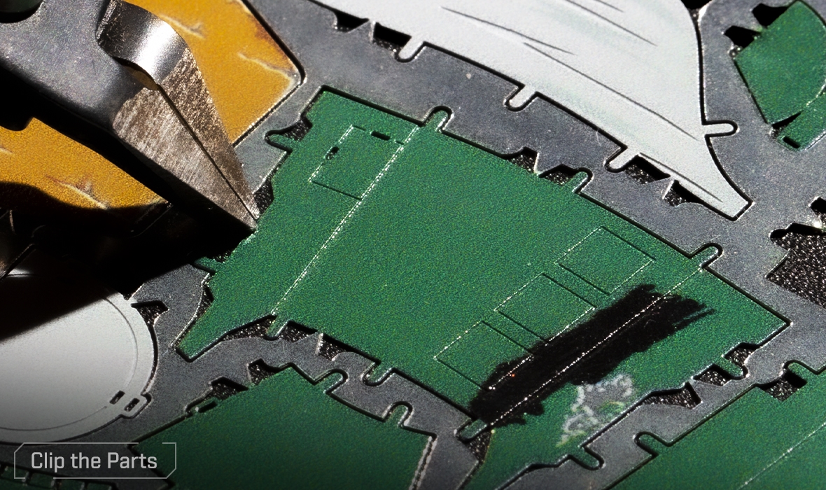 Parts can be more easily removed from the sheet using a pair of clippers. A pair of tweezers or needle nose pliers are highly recommended during assembly. Plan out and understand how the parts will come together.