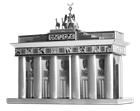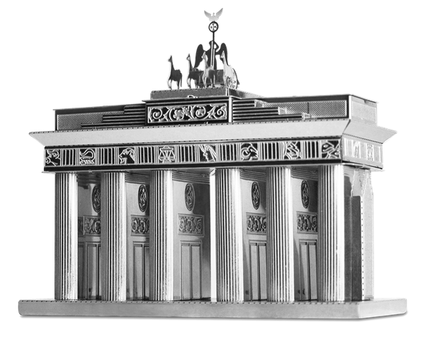 The Brandenburg Gate is the only remaining gate through which Berlin was once entered. It was commissioned by King William II of Prussia as a sign of peace. The design is based upon the gateway to the Acropolis in Athens. Atop the gate is the Quadriga, a chariot drawn by four horses driven by Victoria, the Roman goddess of victory.