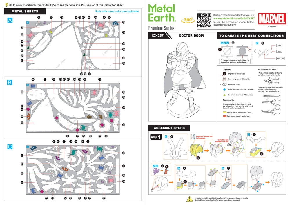 Parts can be more easily removed from the sheet using a pair of clippers. A pair of tweezers or needle nose pliers are highly recommended during assembly. Plan out and understand how the parts will come together.