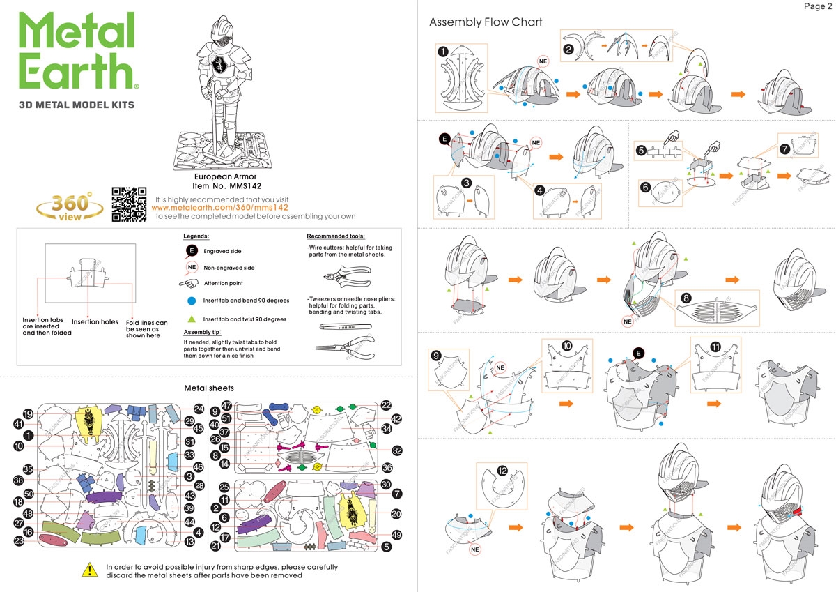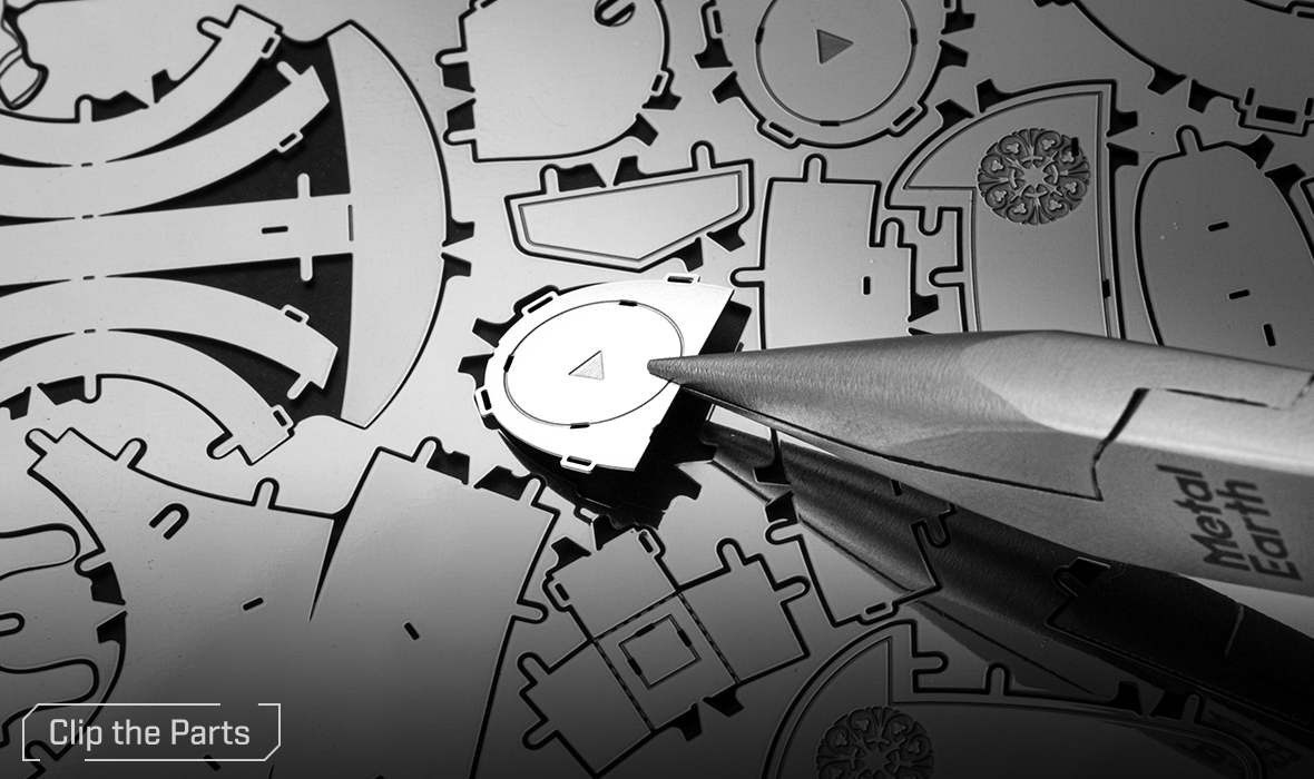 Parts can be more easily removed from the sheet using a pair of clippers. A pair of tweezers or needle nose pliers are highly recommended during assembly. Plan out and understand how the parts will come together.
