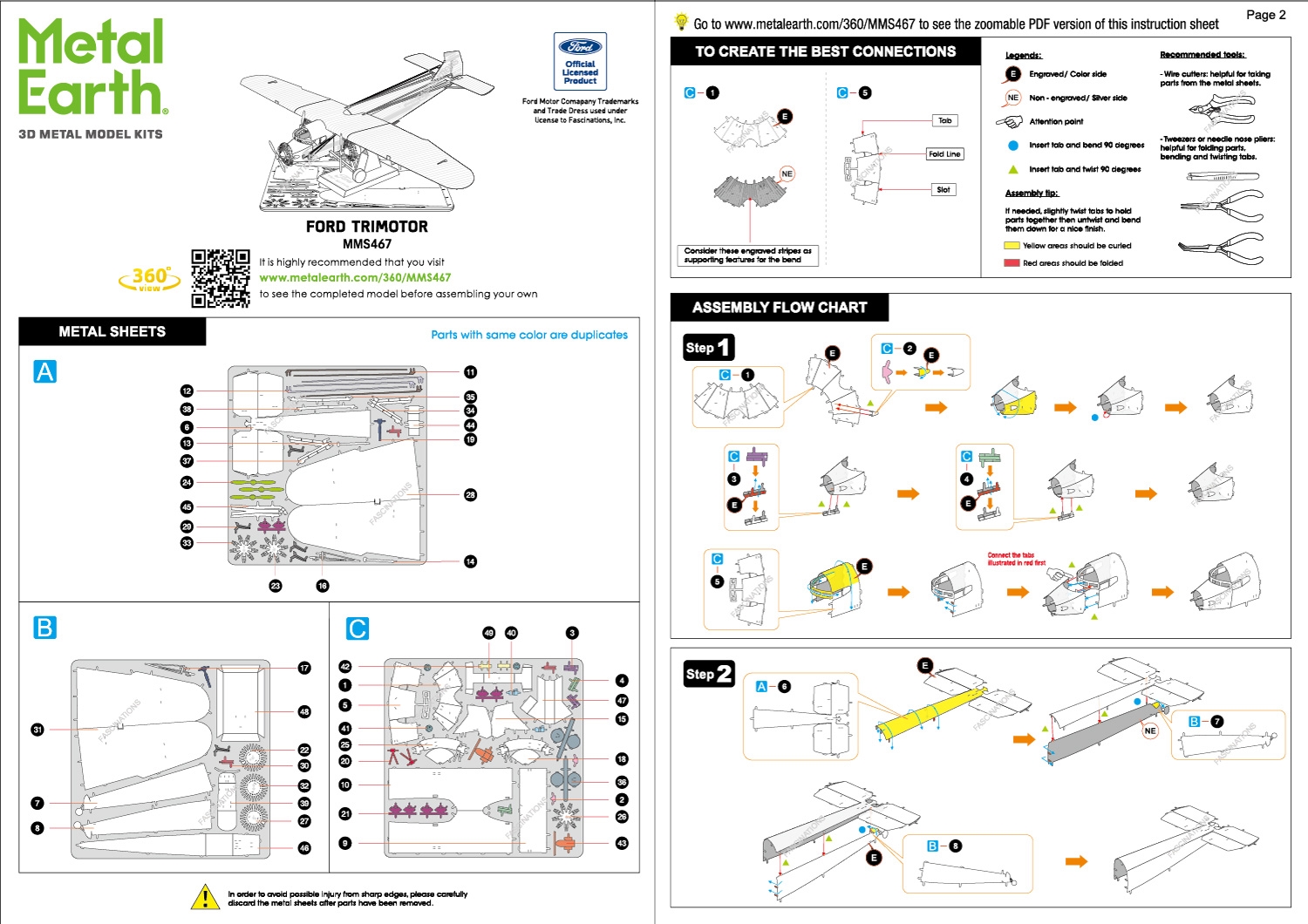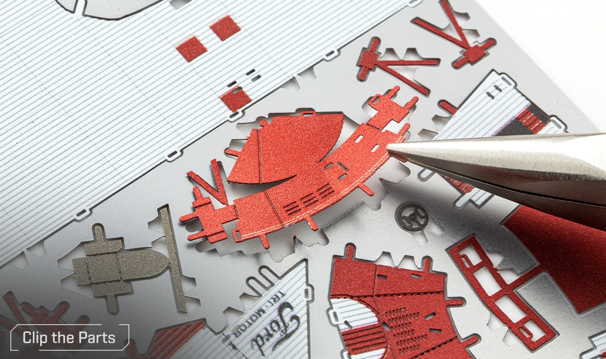 Parts can be more easily removed from the sheet using a pair of clippers. A pair of tweezers or needle nose pliers are highly recommended during assembly. Plan out and understand how the parts will come together.