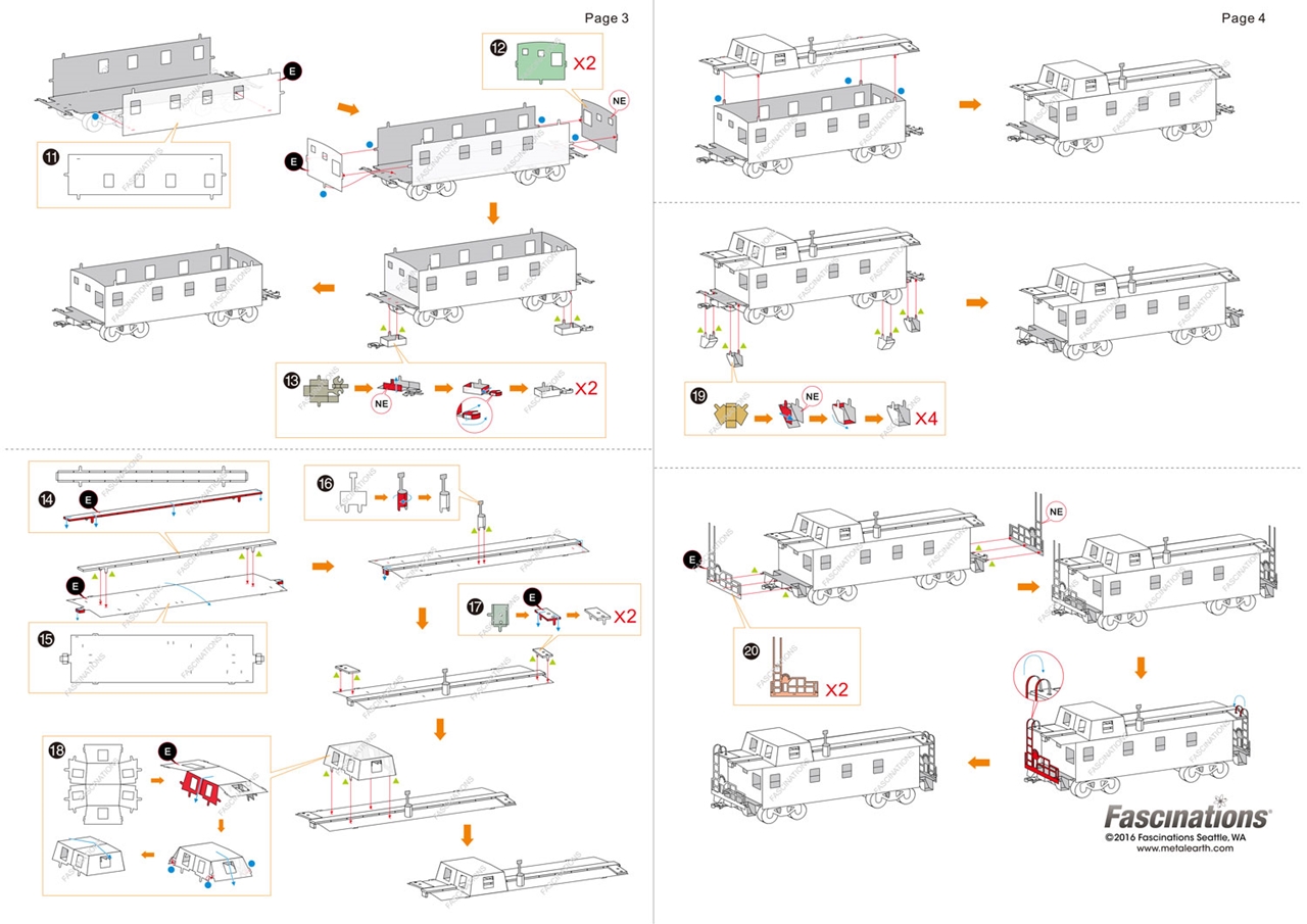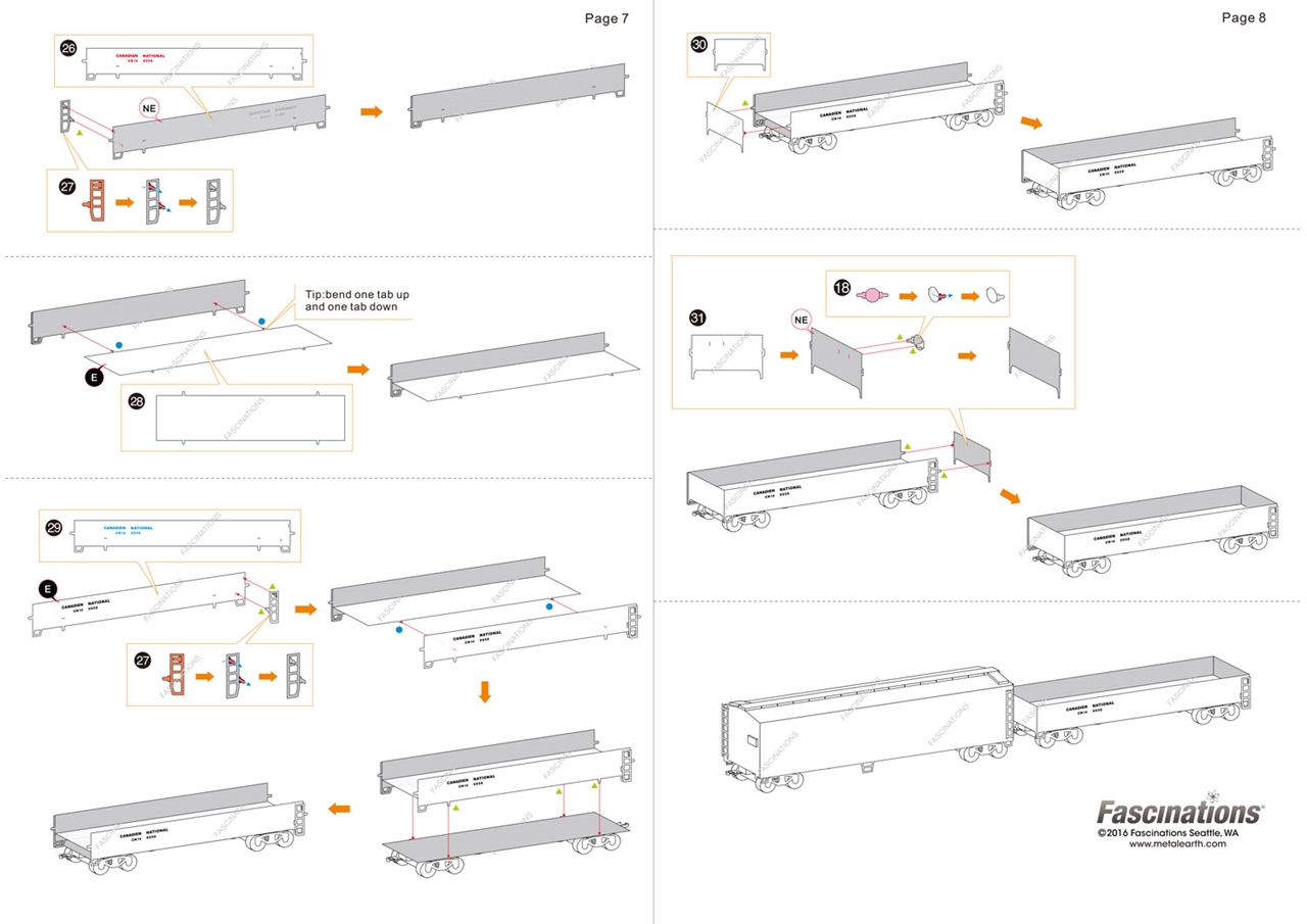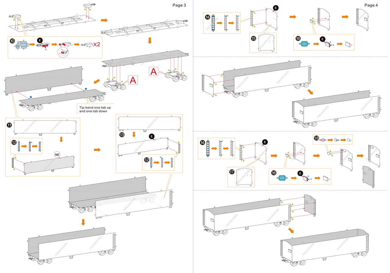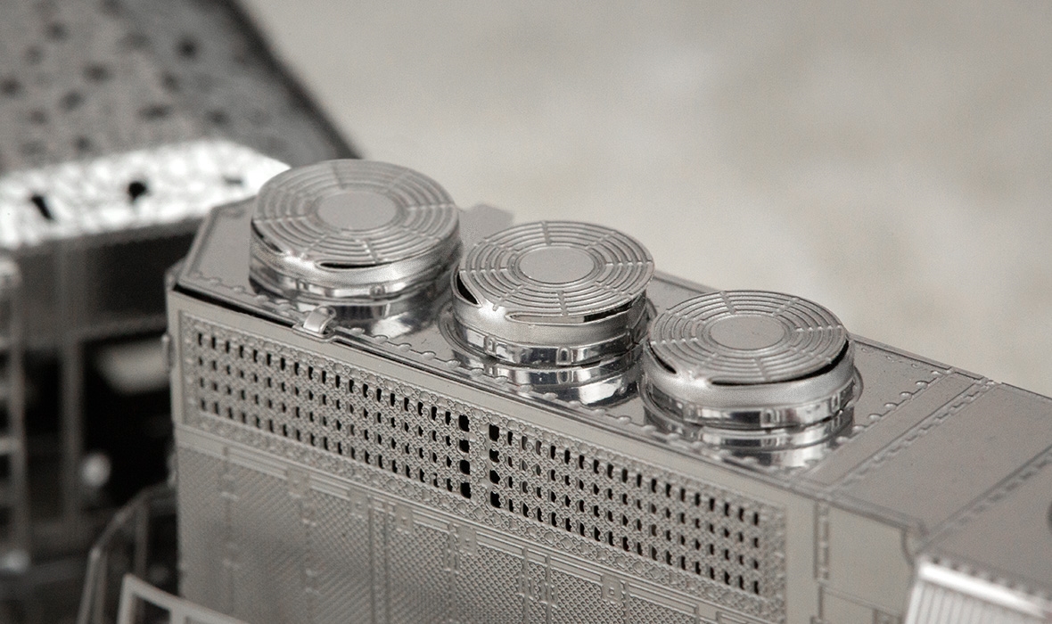 This 5 piece model train consists of five 4" x 4" steel sheets from which individual parts can be removed to assemble a museum quality model using tabs and holes. This Freight Train set includes 5 train cars including the Diesel Locomotive, Gondola Car, Box Car, Hopper Car and Off Center Caboose. The connected model length is 17 inches.