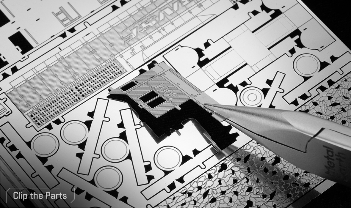 Parts can be more easily removed from the sheet using a pair of clippers. A pair of tweezers or needle nose pliers are highly recommended during assembly. Plan out and understand how the parts will come together.