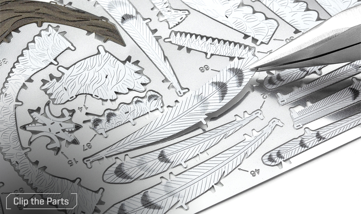 Parts can be more easily removed from the sheet using a pair of clippers. A pair of tweezers or needle nose pliers are highly recommended during assembly. Plan out and understand how the parts will come together.