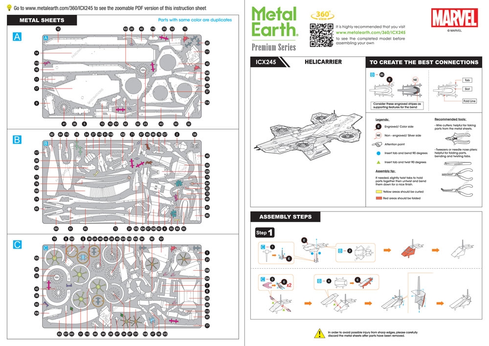 Parts can be more easily removed from the sheet using a pair of clippers. A pair of tweezers or needle nose pliers are highly recommended during assembly. Plan out and understand how the parts will come together.