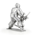 In ice hockey, a goalie is the player responsible for preventing an opposing team from scoring, by stopping a hockey puck from entering their team’s net. Due to their unique position, a goalie uses different skates and a larger stick than the other players on the ice. The goalie will also wear more protective gear, as they may face direct impacts of a puck travelling over 100 MPH.