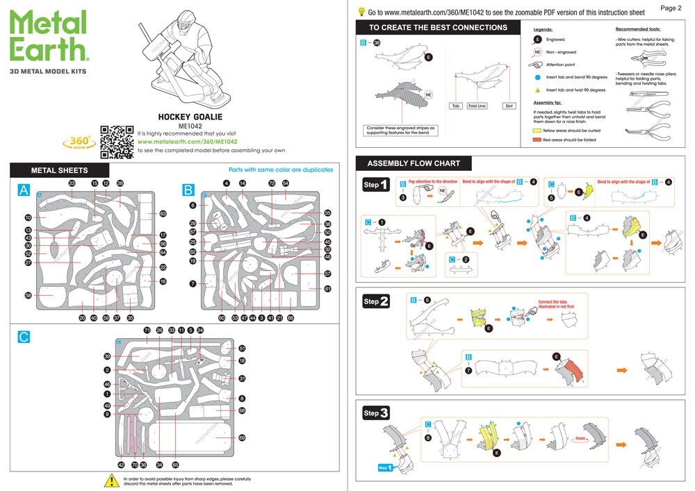 Parts can be more easily removed from the sheet using a pair of clippers. A pair of tweezers or needle nose pliers are highly recommended during assembly. Plan out and understand how the parts will come together.
