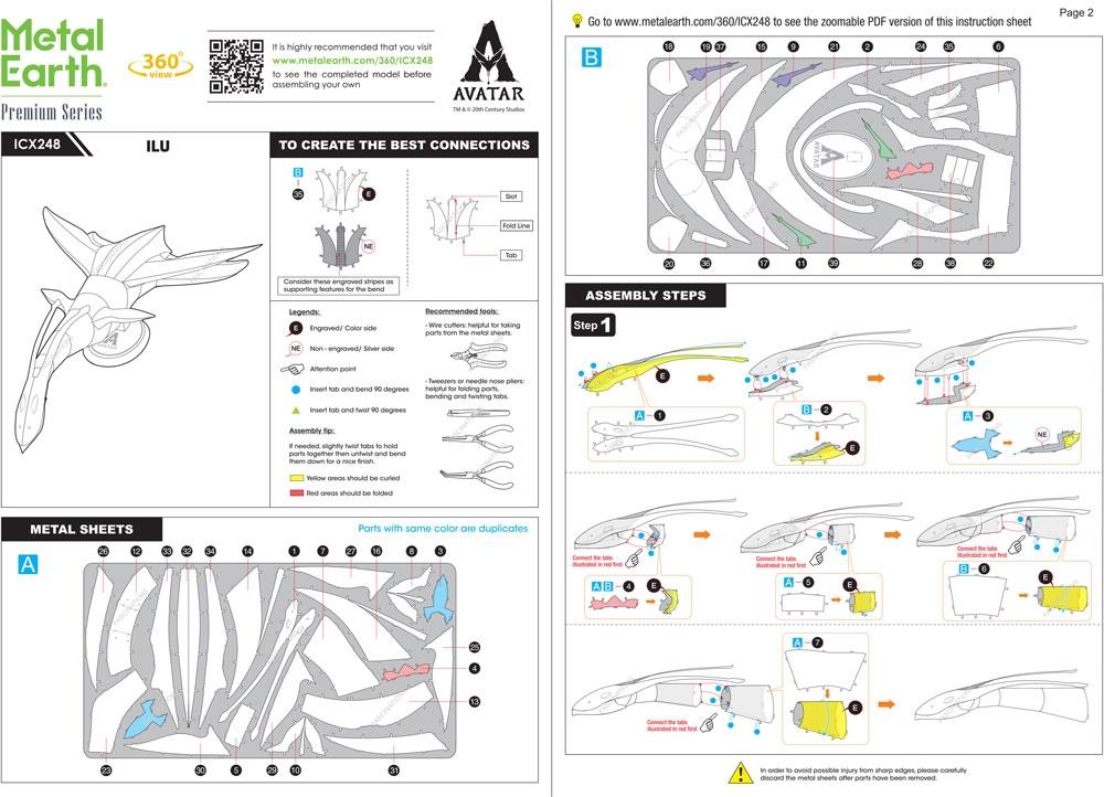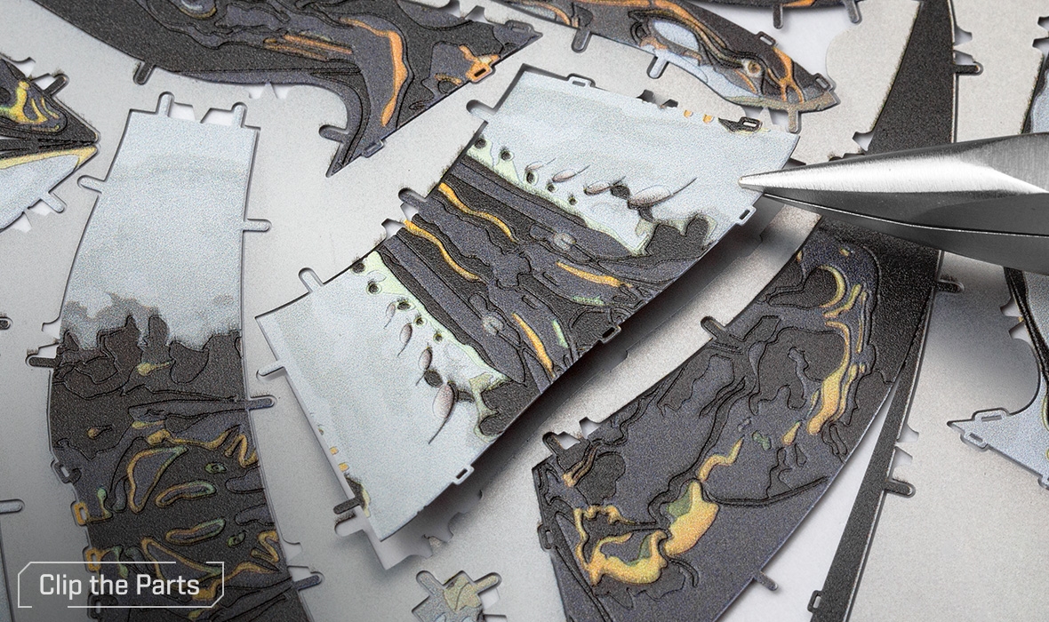 Parts can be more easily removed from the sheet using a pair of clippers. A pair of tweezers or needle nose pliers are highly recommended during assembly. Plan out and understand how the parts will come together.