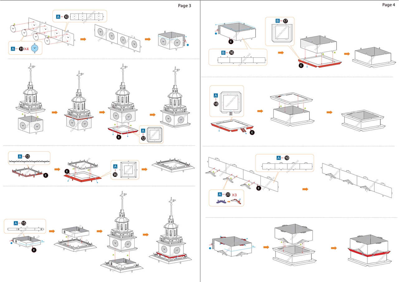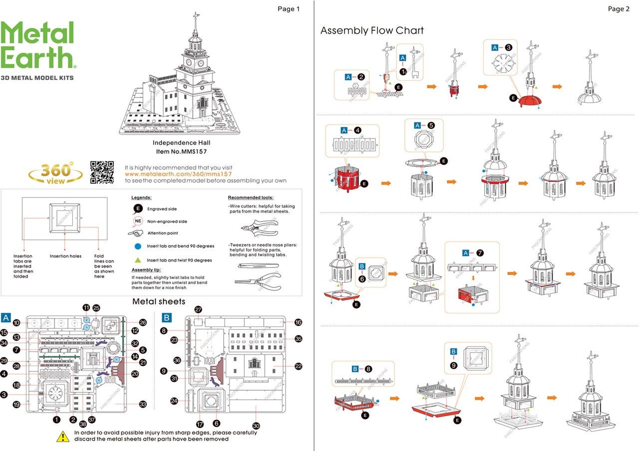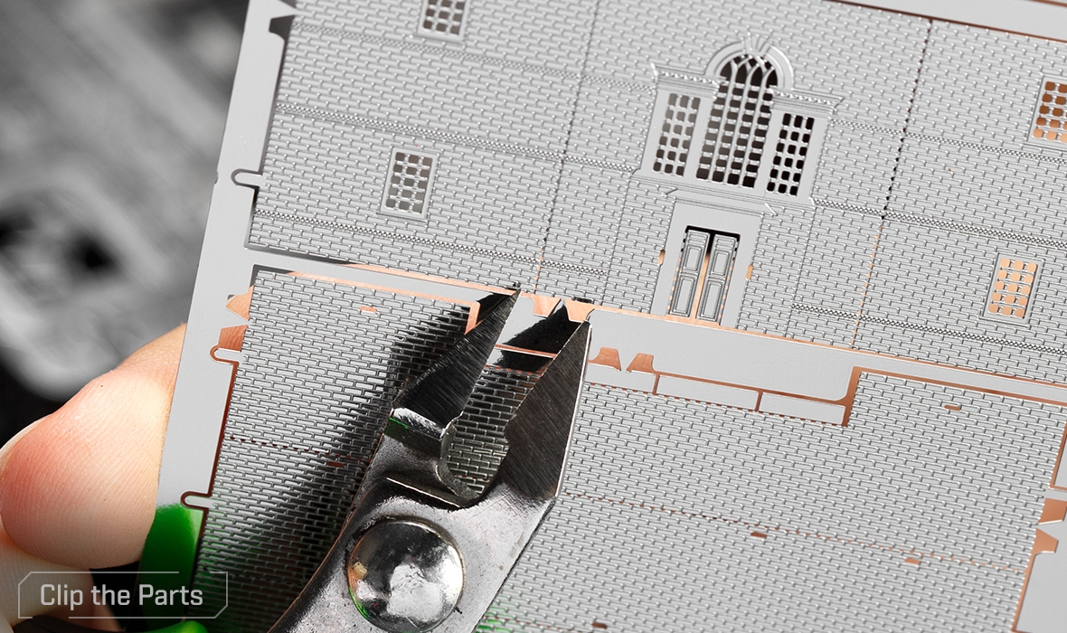 Parts can be more easily removed from the sheet using a pair of clippers. A pair of tweezers or needle nose pliers are highly recommended during assembly. Plan out and understand how the parts will come together.