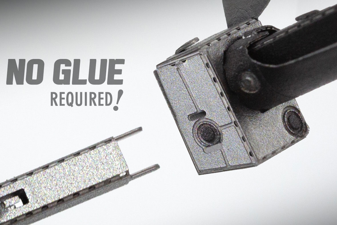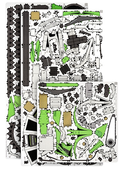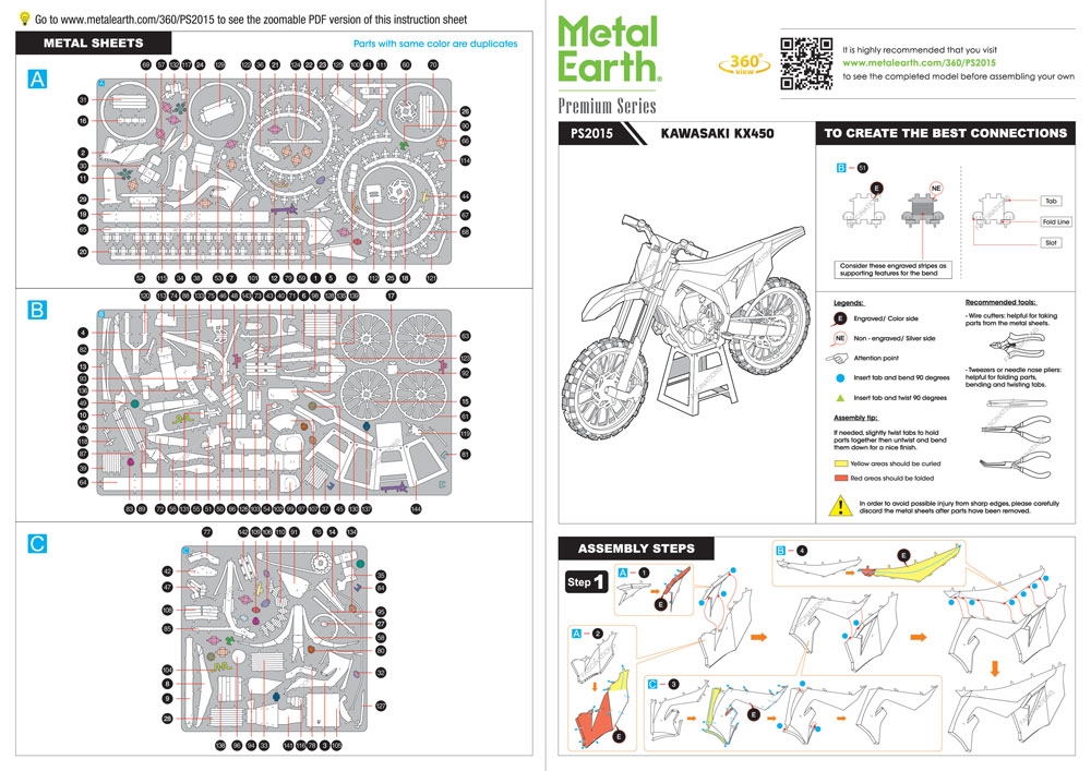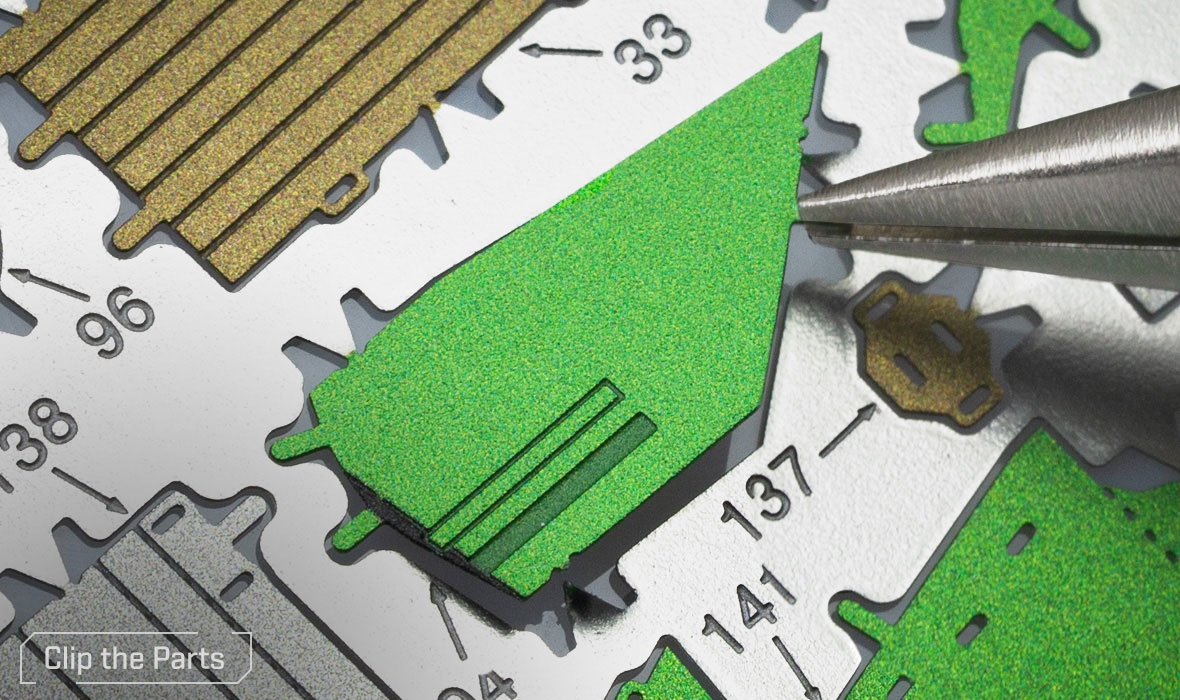 Parts can be more easily removed from the sheet using a pair of clippers. A pair of tweezers or needle nose pliers are highly recommended during assembly. Plan out and understand how the parts will come together.