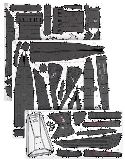 Parts can be more easily removed from the sheet using a pair of clippers. A pair of tweezers or needle nose pliers are highly recommended during assembly. Plan out and understand how the parts will come together.