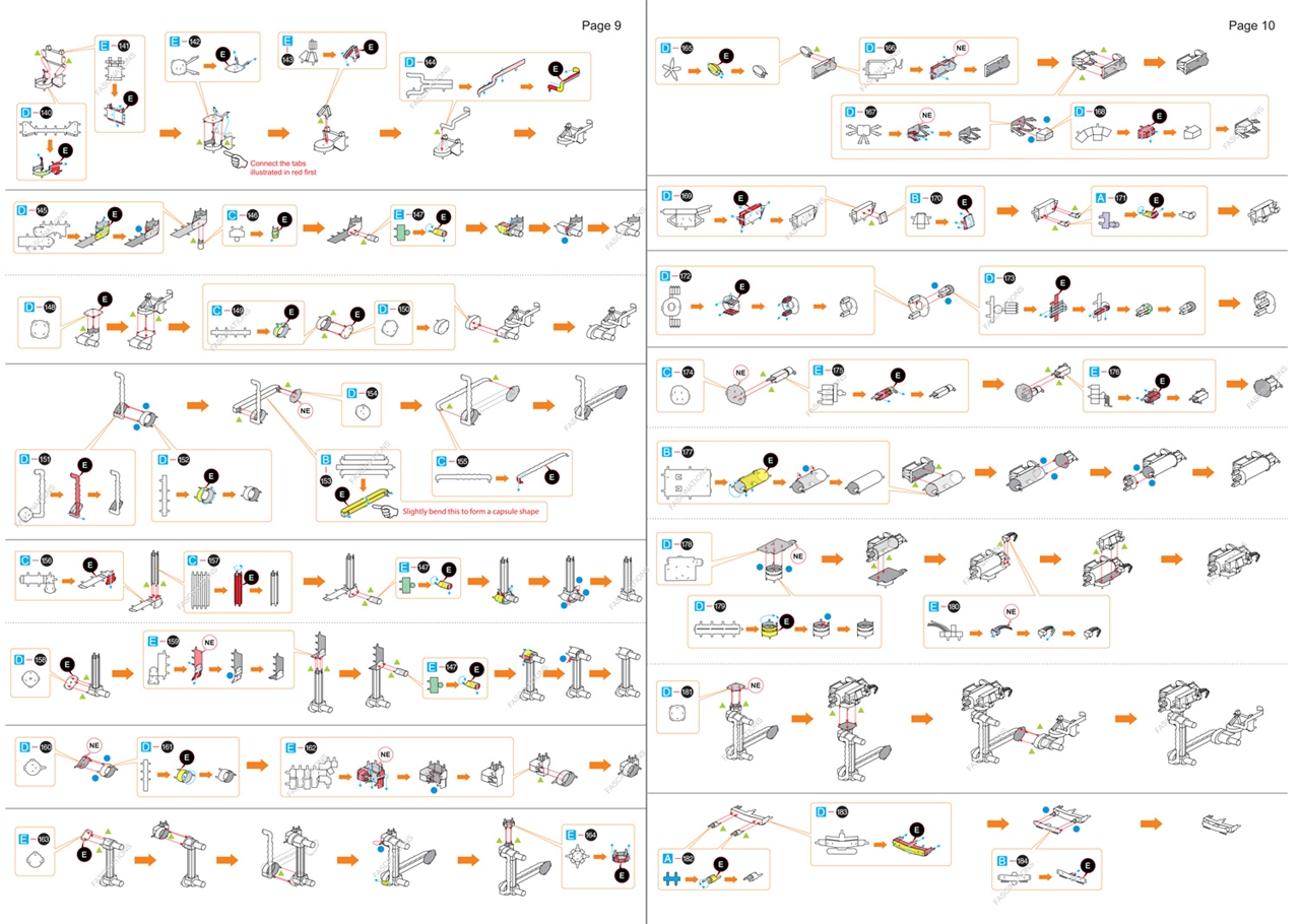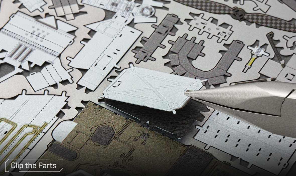 Parts can be more easily removed from the sheet using a pair of clippers. A pair of tweezers or needle nose pliers are highly recommended during assembly. Plan out and understand how the parts will come together.