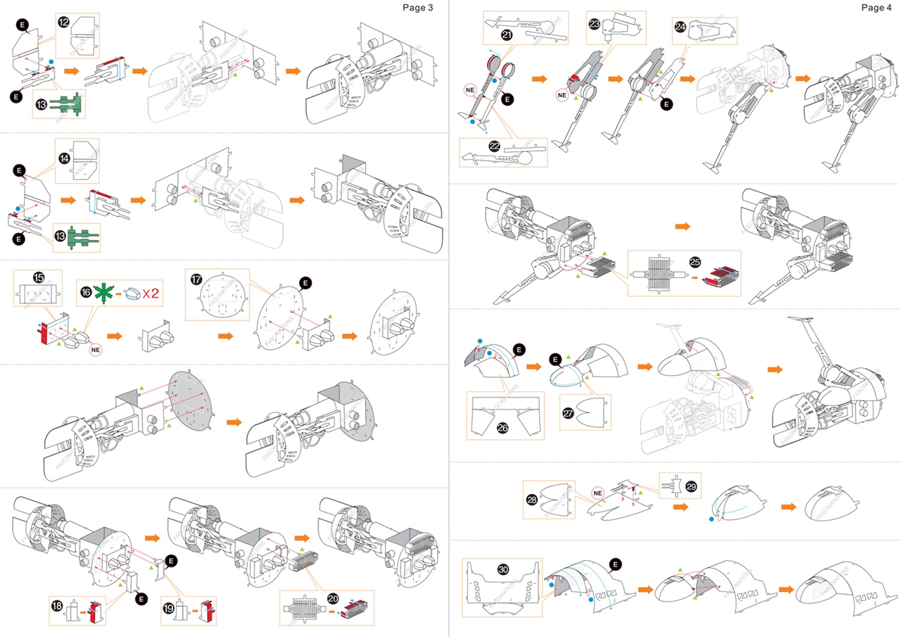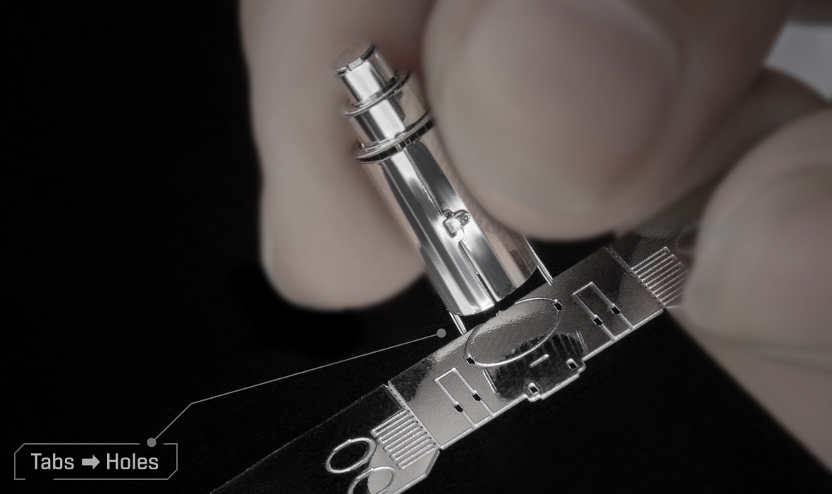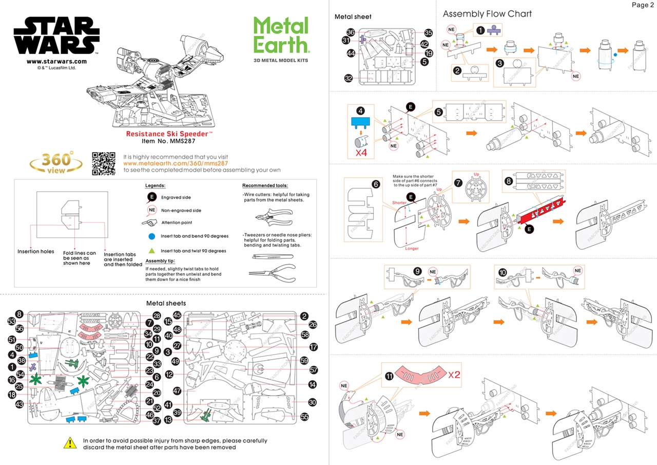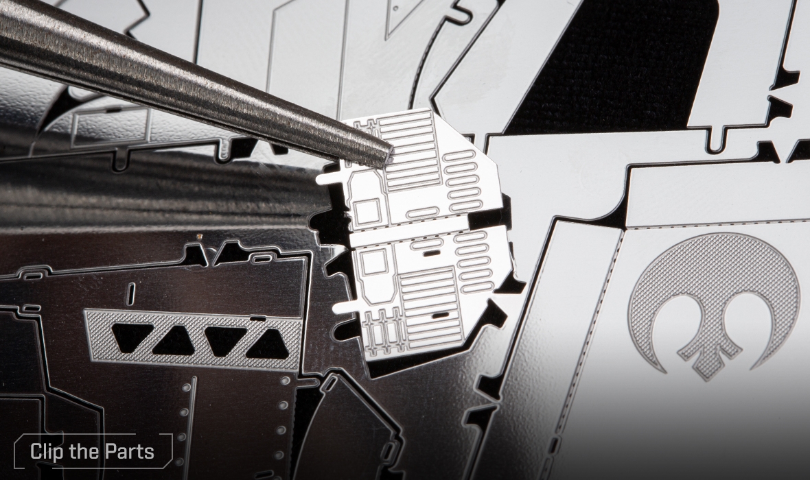 Parts can be more easily removed from the sheet using a pair of clippers. A pair of tweezers or needle nose pliers are highly recommended during assembly. Plan out and understand how the parts will come together.