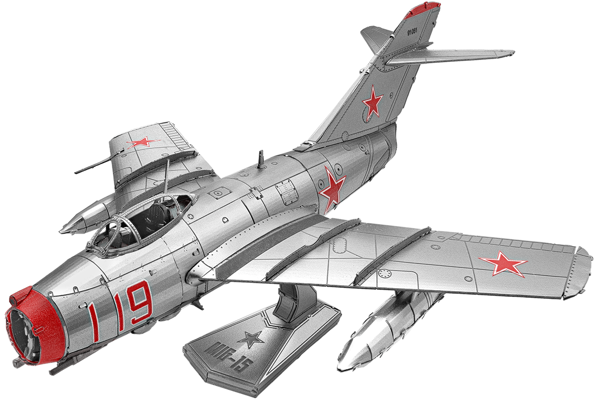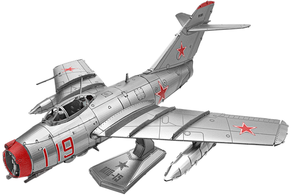 The MiG-15 is a single-seat, single-engine Soviet jet fighter, built by the Russian aerospace and defense company, Mikoyan-Gurevich (MiG). It was used extensively in combat during the Korean War (1950–53). When first introduced into the Korean war, the United States was shocked by the plane’s speed, climbing ability, and high operating ceiling. In response, the United States hurried to deliver the new F-86 Sabre jet in order to reestablish U.S. air supremacy in the war.