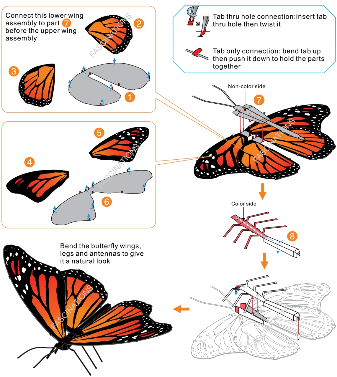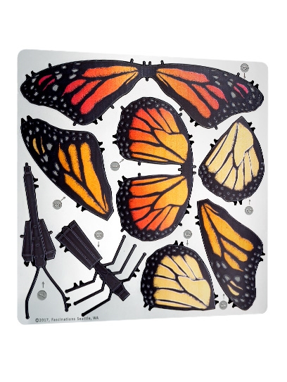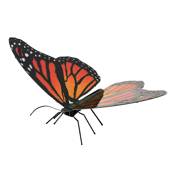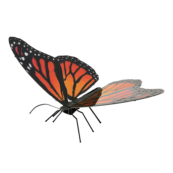 All Metal Earth butterflies are made of 1 sheet colored models and are rated as “Easy” builds. The upper (dorsal side) and undersides (ventral side) of the forewings and hindwings are decorated in color.