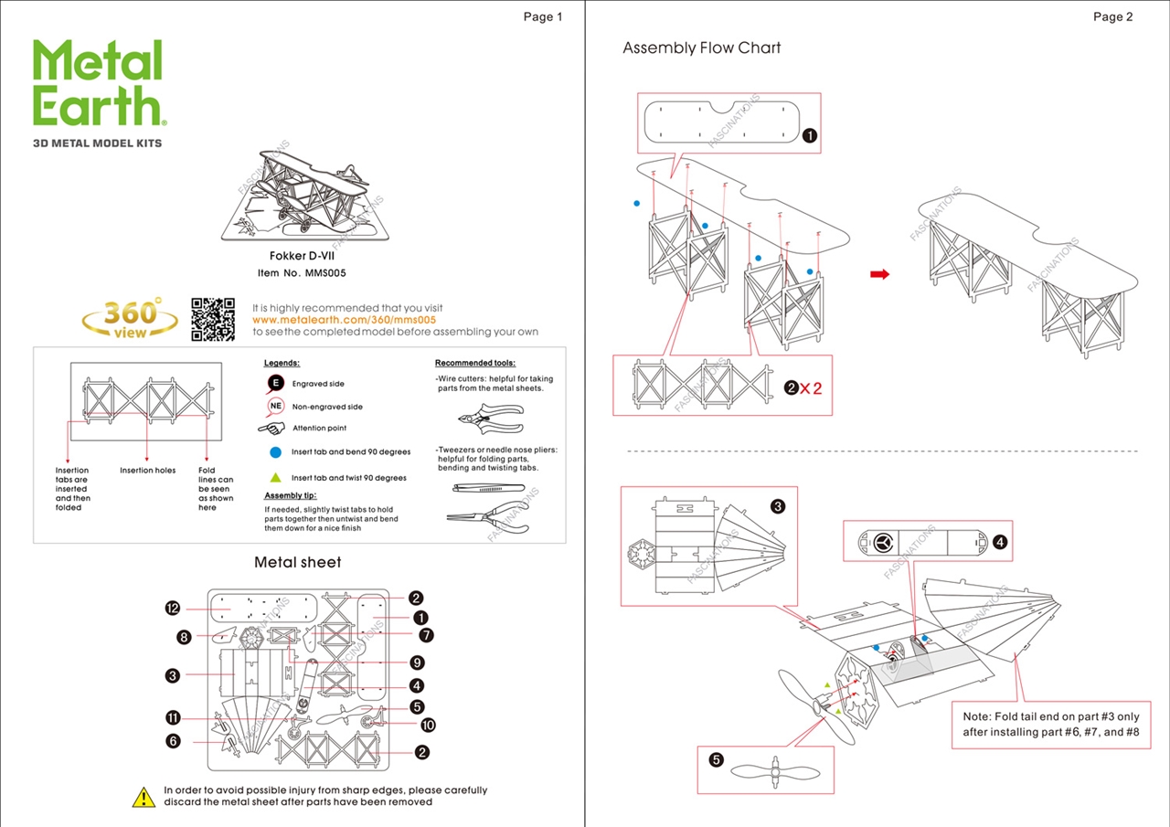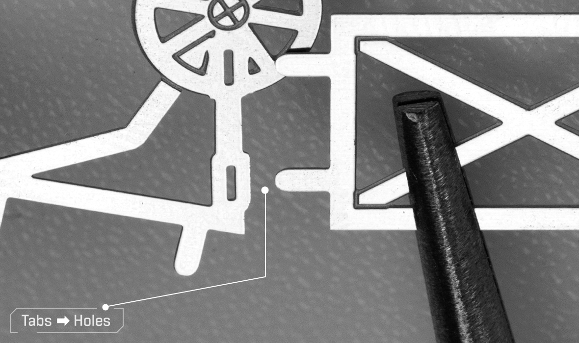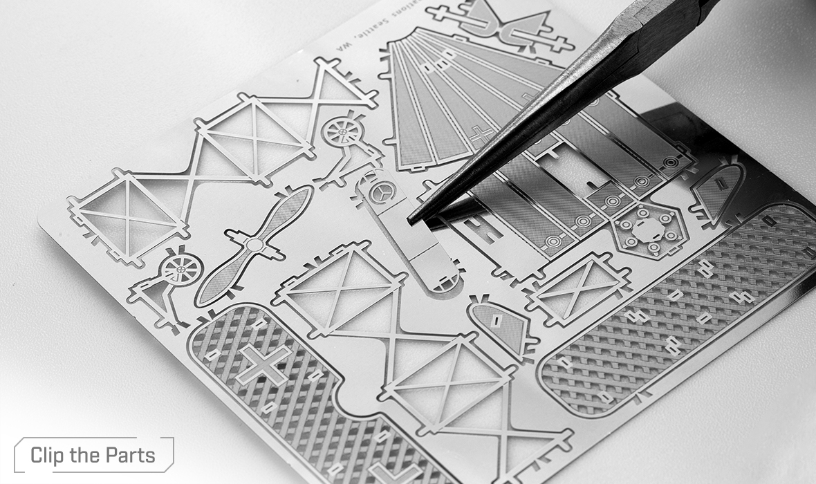 Parts can be more easily removed from the sheet using a pair of clippers. A pair of tweezers or needle nose pliers are highly recommended during assembly. Plan out and understand how the parts will come together.