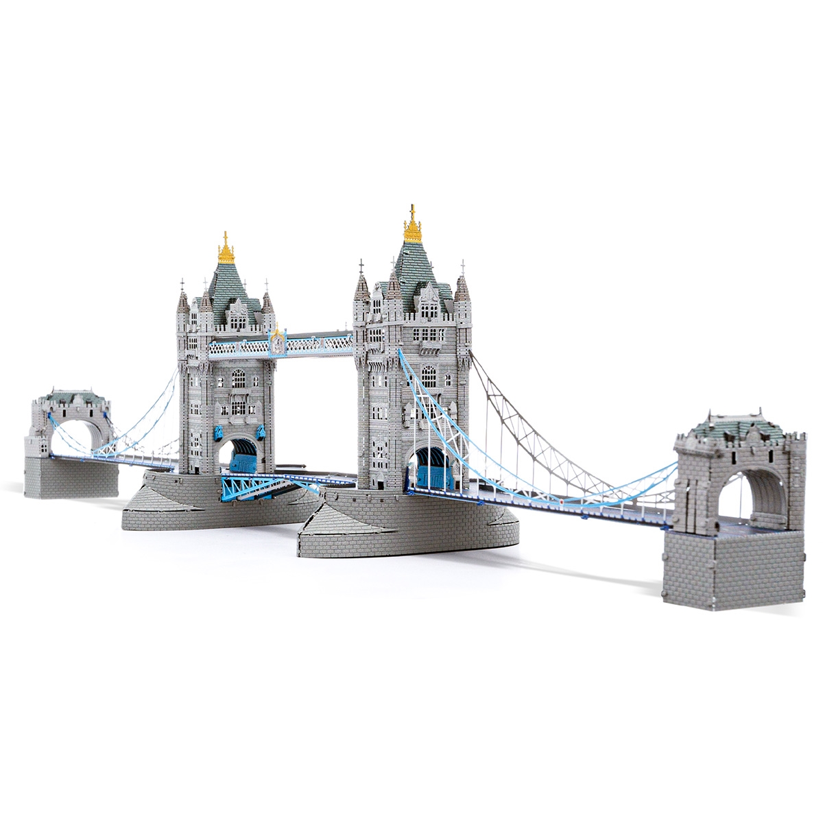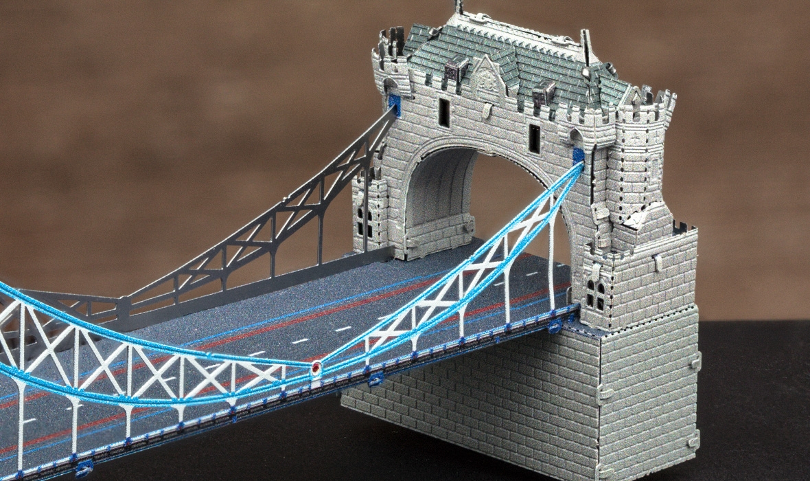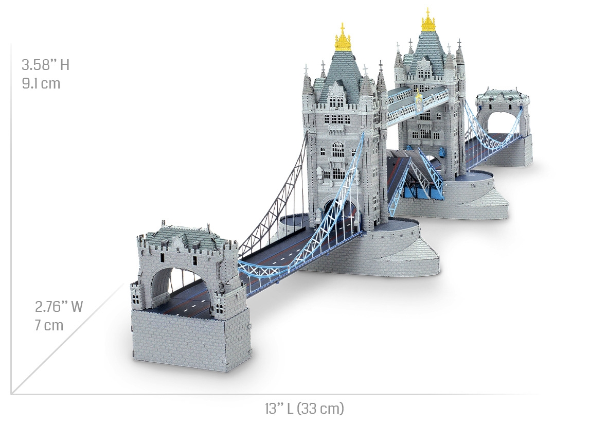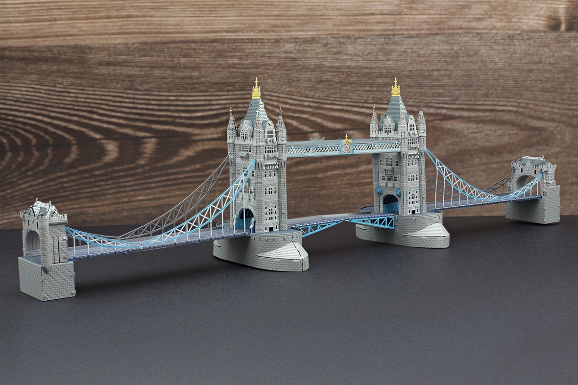 The London Tower Bridge, built in 1886-1894 over the River Thames, is both a suspension and a drawbridge. It has become an iconic symbol of London and was featured in many films such as the 2009 Sherlock Holmes movie. This 244 meter bridge consists of two towers (65 meters high) tied together at the upper level by means of two horizontal walkways.