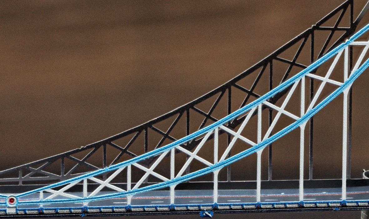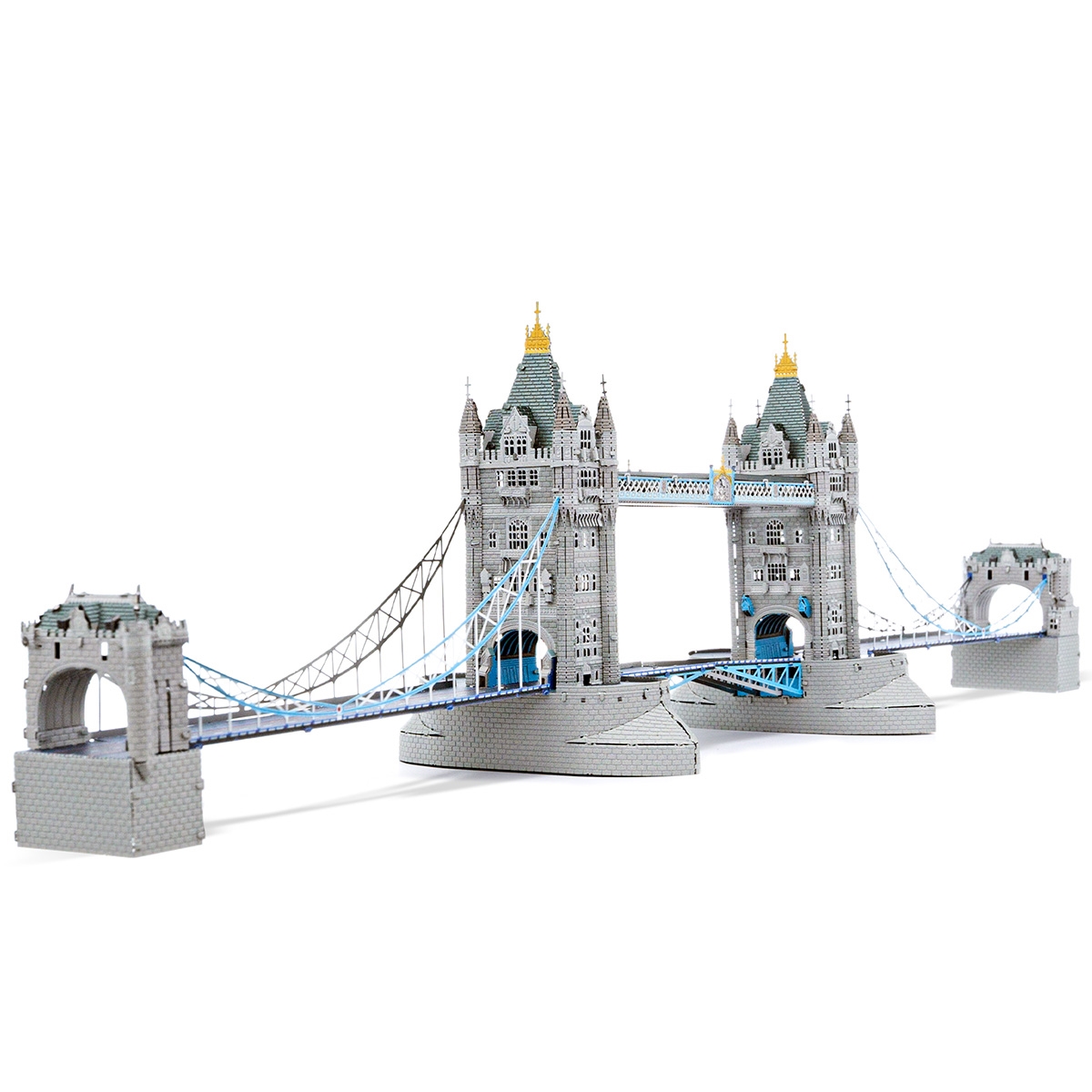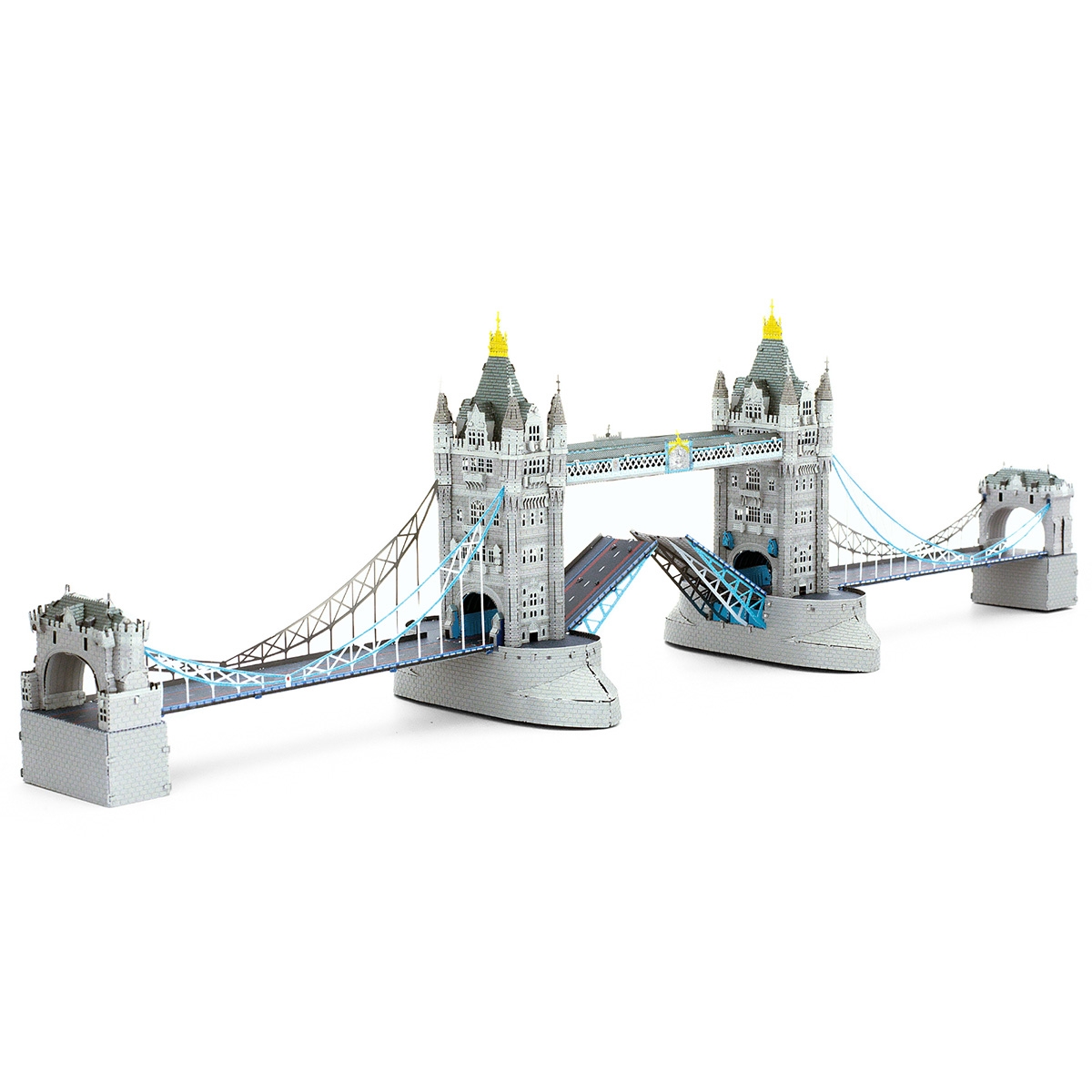 The London Tower Bridge, built in 1886-1894 over the River Thames, is both a suspension and a drawbridge. It has become an iconic symbol of London and was featured in many films such as the 2009 Sherlock Holmes movie. This 244 meter bridge consists of two towers (65 meters high) tied together at the upper level by means of two horizontal walkways.
