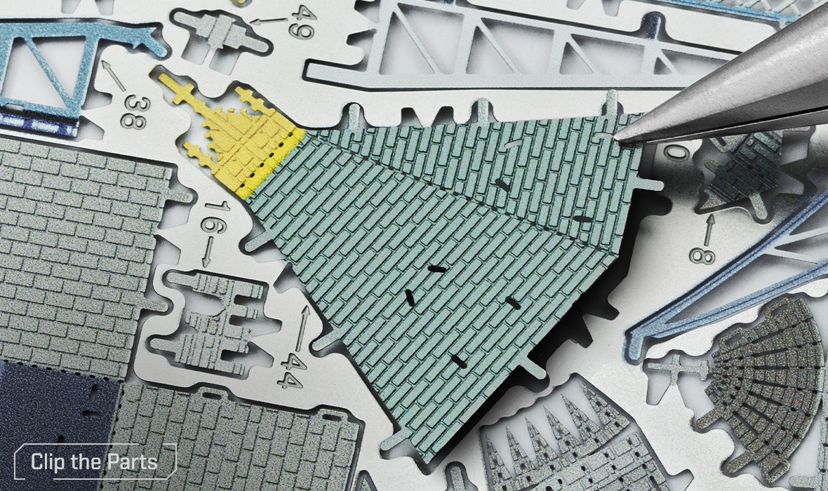 Parts can be more easily removed from the sheet using a pair of clippers. A pair of tweezers or needle nose pliers are highly recommended during assembly. Plan out and understand how the parts will come together.