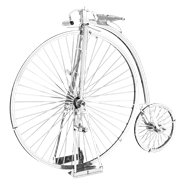 Metal Earth Penny Farthing model kit is an amazingly detailed etched model that is fun and satisfying to assemble. It starts as 2 4-inch square steel sheets and finishes as a 3.42" x 1.18" x 2.87" 3D model. Simply use the easy-to-follow instructions included with the sheet to pop out the pieces, bend the tabs, and connect them at the attachment points. No glue nor solder required.
