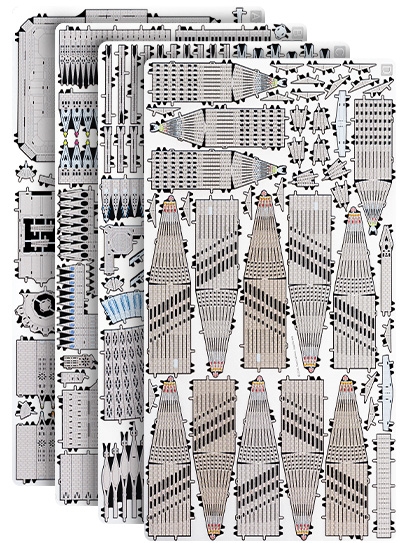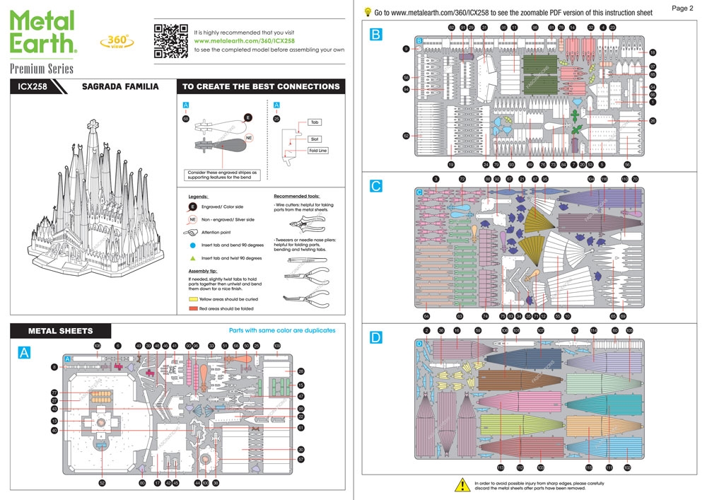 Parts can be more easily removed from the sheet using a pair of clippers. A pair of tweezers or needle nose pliers are highly recommended during assembly. Plan out and understand how the parts will come together.
