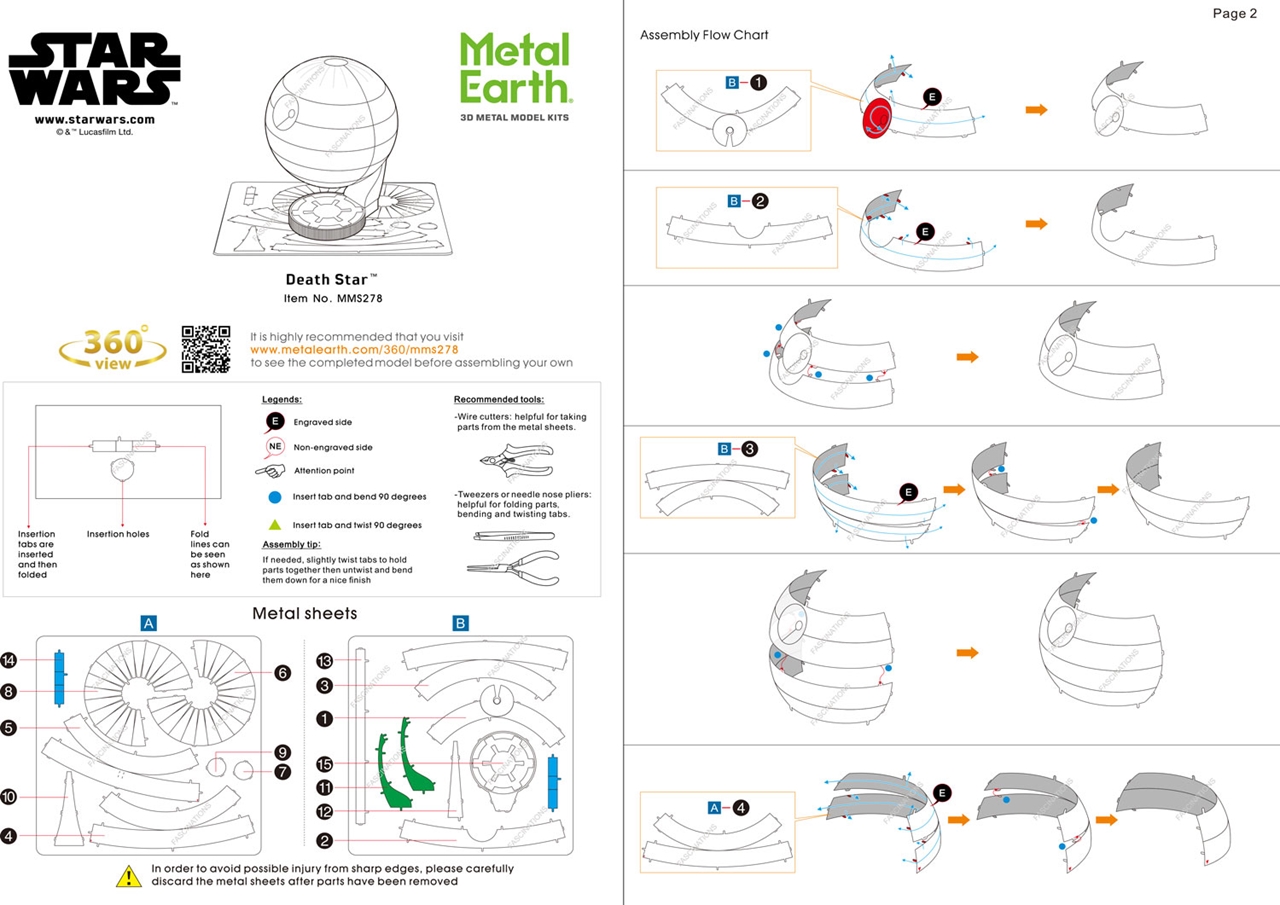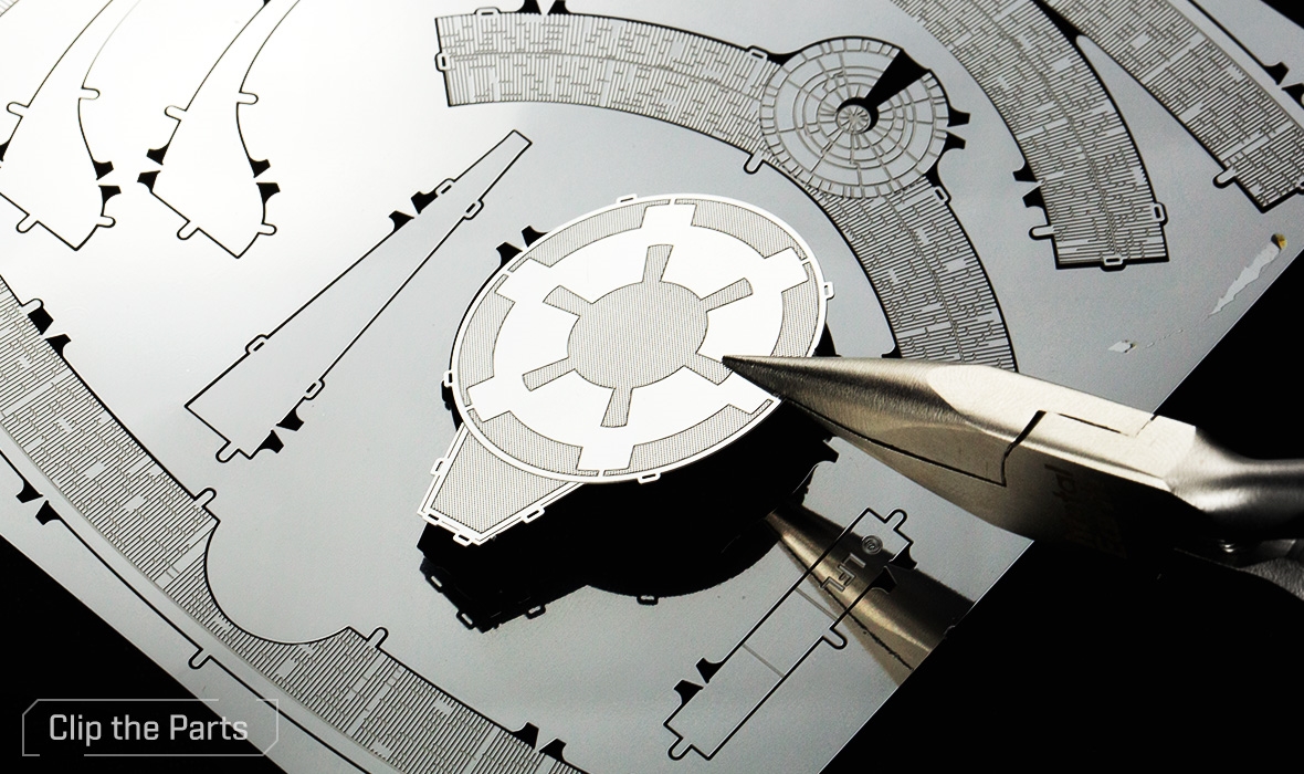 Parts can be more easily removed from the sheet using a pair of clippers. A pair of tweezers or needle nose pliers are highly recommended during assembly. Plan out and understand how the parts will come together.