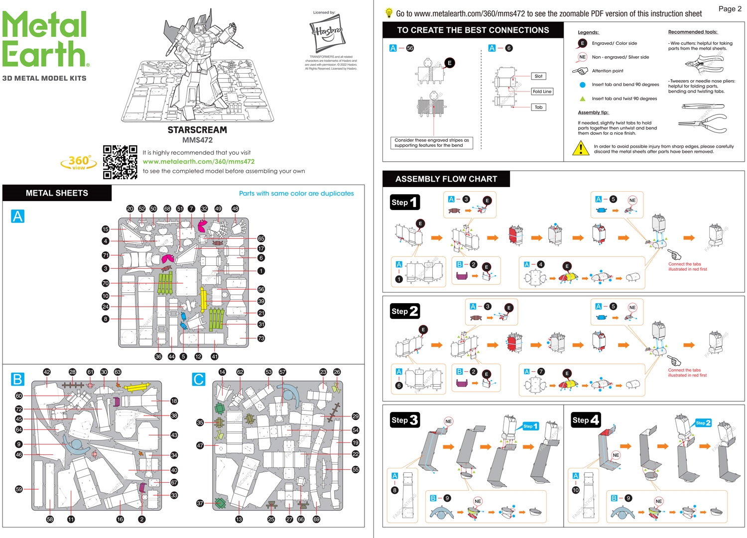 Parts can be more easily removed from the sheet using a pair of clippers. A pair of tweezers or needle nose pliers are highly recommended during assembly. Plan out and understand how the parts will come together.