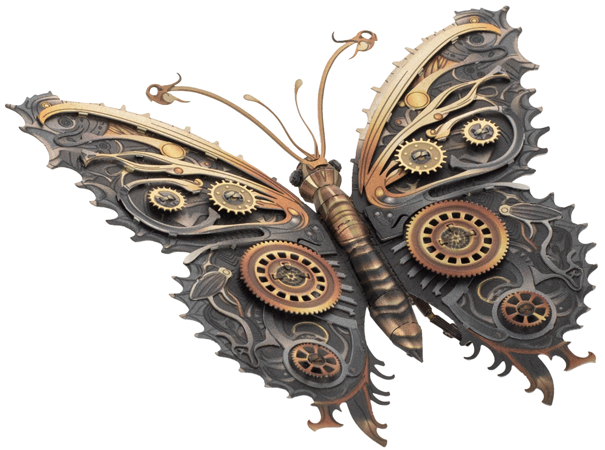 Steampunk Butterfly evokes a nostalgic sense of “a world that never was”. Where history and fantasy collide with Victorian-era industrialism.