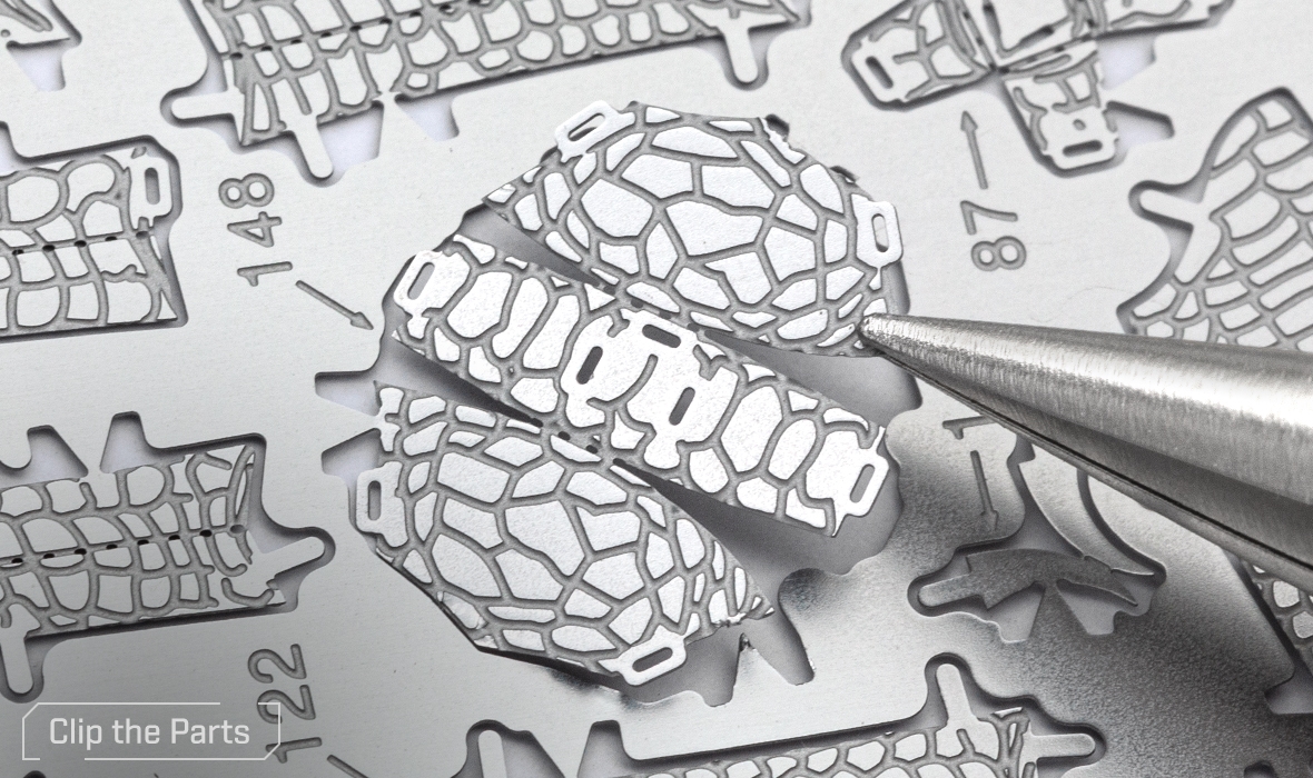 Parts can be more easily removed from the sheet using a pair of clippers. A pair of tweezers or needle nose pliers are highly recommended during assembly. Plan out and understand how the parts will come together.