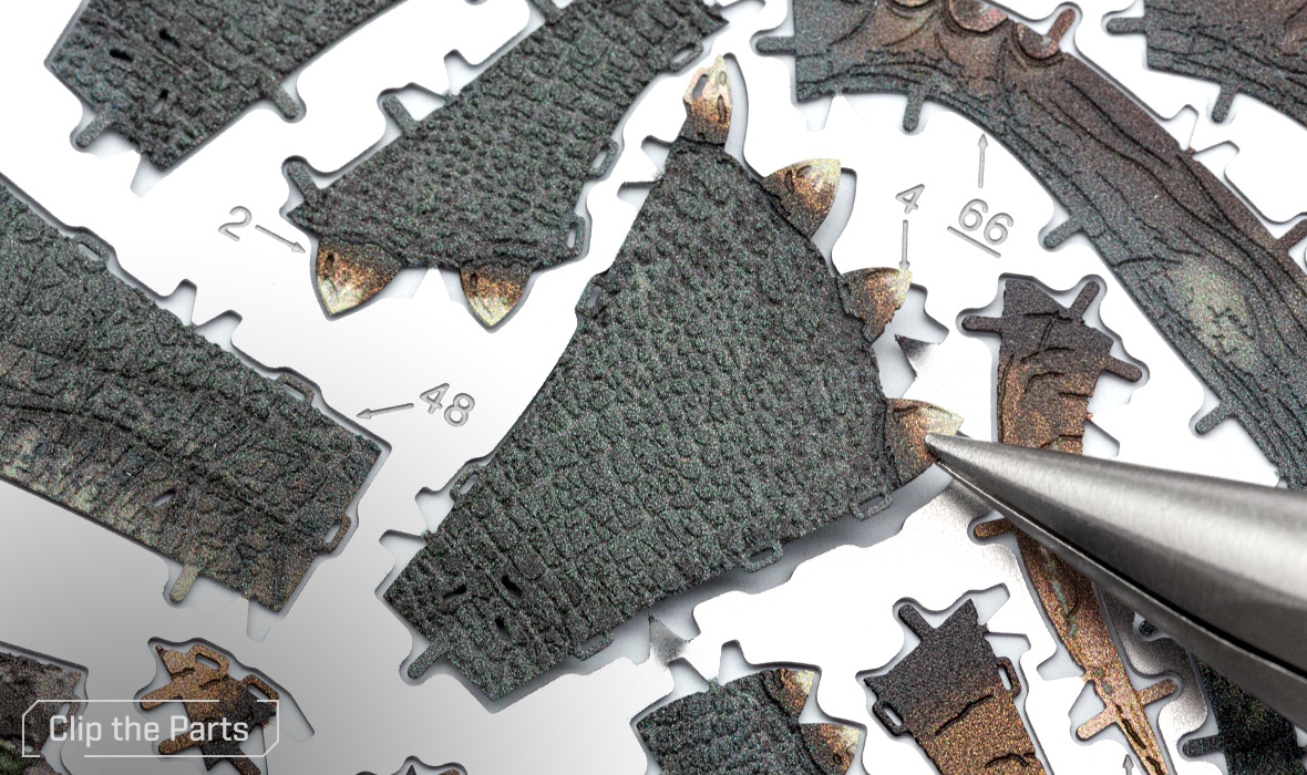Parts can be more easily removed from the sheet using a pair of clippers. A pair of tweezers or needle nose pliers are highly recommended during assembly. Plan out and understand how the parts will come together.