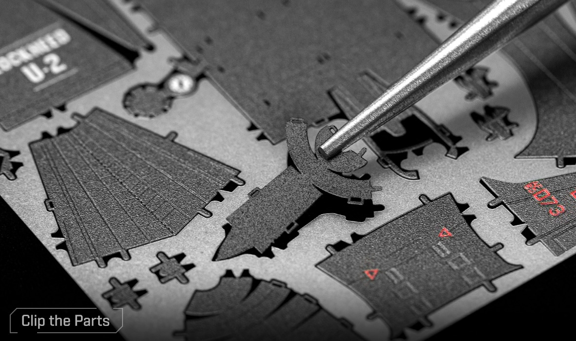 Parts can be more easily removed from the sheet using a pair of clippers. A pair of tweezers or needle nose pliers are highly recommended during assembly. Plan out and understand how the parts will come together.