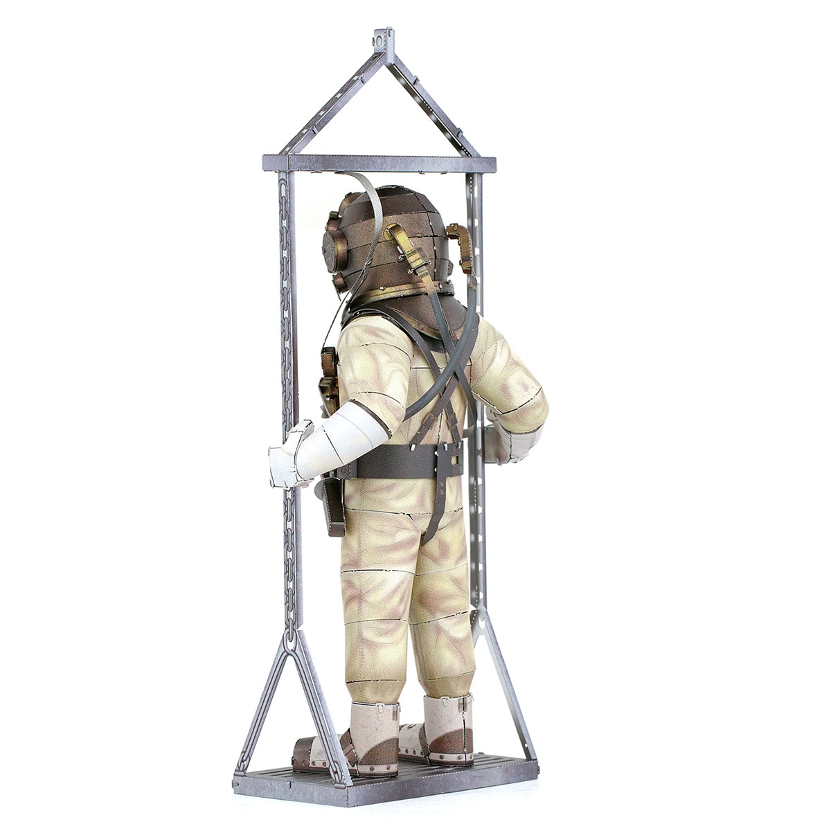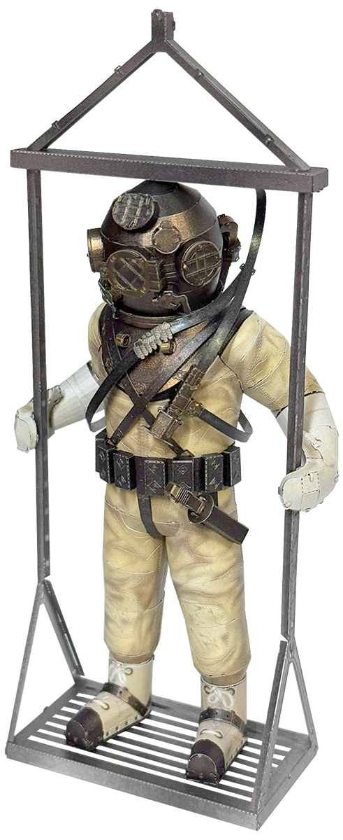 Vintage Deep Sea Diving Suit was a type of watertight garment used for deep underwater commercial work, including marine salvage and pearl shell diving. The suit protected divers from the pressure of the ocean and allowed them to breath underwater. It consisted of a diving helmet, a waterproofed  canvas suit, an air hose, a diving knife and weights to counteract buoyancy.