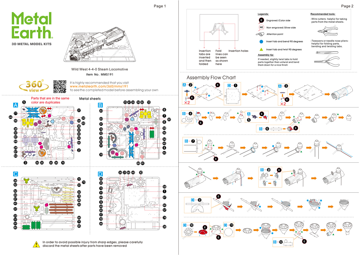 instruction sheet MMS191 - Wild West 4-4-0 Locomotive